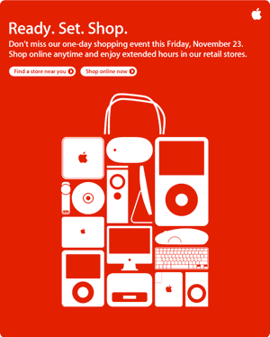Aggiornamento del 20/11/2007: in serata l'Apple Store online per gli Stati Uniti ha cominciato ad annunciare il Black Friday, rimandando alla giornata di venerdì.