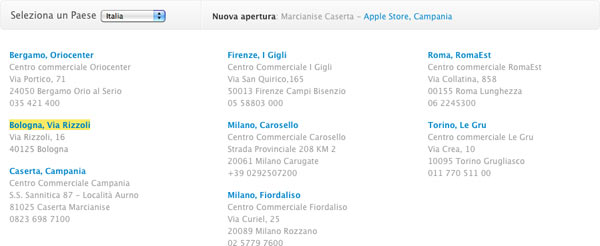 Aggiornamento del 12/09/2011: un paio d’ore dopo la pubblicazione del nostro articolo Apple ha cancellato dalla lista il negozio bolognese, anche se il banner con l’orario d’apertura resta accessibile.