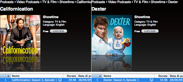 Su iTunes Store sono assenti da sempre i video ma qualcuno stuzzica con locuzioni che si potevano evitare. Showtime si affida ai podcast per regalare le nuove puntate di Californication e Dexter.