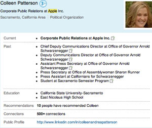 Del nuovo impiego dell’ex chief deputy dell’ufficio stampa del governatore si è accorto 9 to 5 Mac, che opportunamente ricorda come in almeno un paio di situazioni recenti Steve Jobs ha potuto avere contatto con la Patterson.