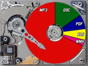 Ma cosa ci mettono gli utenti USA nei loro hard disk? Quanto ai documenti: 880 file MP3 per una media di 4,78 MB e un totale di circa 3 GB su ogni hard disk, 197 file di Word, 100 file PDF, 77 file di Excel e 36 file Windows Media Video, questi ultimi per una media di 12,5 MB ed un totale di 329 MB.