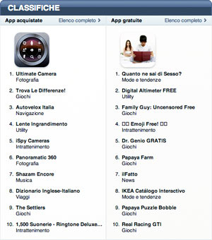 In iTunes Store, sul lato destro (come si vede accanto), possiamo leggere le classifiche aggiornate dei prodotti multimediali più scaricati/venduti.