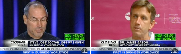 Aggiornamento del 25/06/2009: il medico che ha operato Steve Jobs è stato intervistato da CNBC ed ha confermato che il paziente non ha scavalcato qualcuno in lista d'attesa. L'agenzia AP senza troppi giri di parole definisce il trapianto di Jobs il "potere dei soldi" che lo ha fatto prevalere su 16.000 ammalati dello stesso tipo. Forbes sottolinea che i rappresentanti dell'ospedale avevano mentito quando era stato loro chiesto se Steve Jobs era ricoverato da loro. A più di una persona è cresciuto il naso in questo caso, che sembra essersi concluso positivamente.