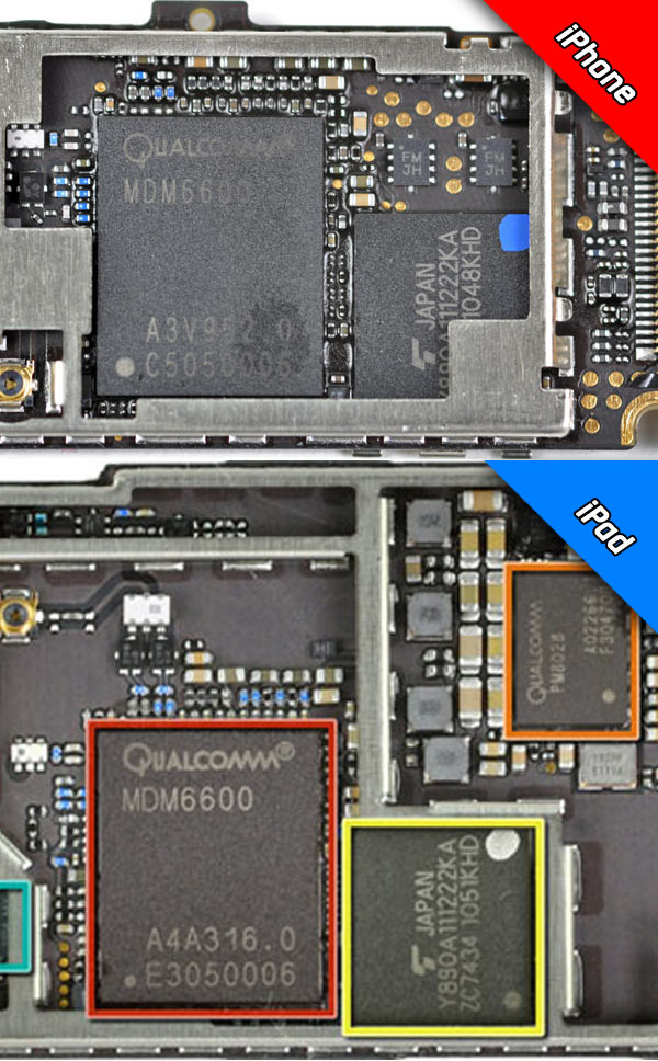 Da quando Apple, all’inizio del 2011, ha soddisfatto le richieste producendo l’iPhone 4 CDMA e, successivamente, l’iPad 2 CDMA, ha introdotto il chip Gobi (che vediamo raffigurato qui sotto in versione smartphone e tablet), ha pero disabilitato la rete GSM ed utilizzato solo quella CDMA. A tutt’oggi Apple ha mantenuto la doppia e diversificata produzione dei modelli GSM e di quelli CDMA, per motivi che ci sfuggono.