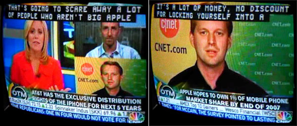 Se è interessante sapere che AT&T sarà il carrier esclusivo dell'iPhone per 5 anni (da europei ed italiani, ci interessa marginalmente, visto i "problemi" che avremo noi, come dice Pascal Cagni, ndr), l'altra notizia passata in video da CNBC, in un programma dove tutti e due gli invitati non hanno poi così tanto favorevolmente parlato dell'iPhone, è sbagliata.