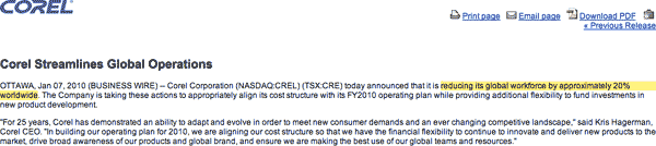 Sostanzialmente 200 persone perderanno il lavoro e le restanti 750 affronteranno il mercato con una maggiore agilità e costi inferiori per l’azienda specializzata in software grafici ma anche nello storico WordPerfect.