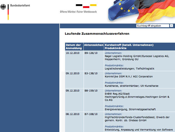 Ecco la documentazione elencata nel database dell’ufficio che tutela la corretta concorrenza in Germania.
