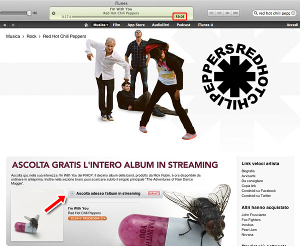 Se qualcuno ha notizie di altri dischi ascoltabili completamente in streaming su iTunes ce lo faccia sapere.