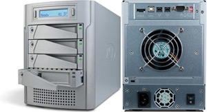 La soluzione RAID a 4 dischi raggiunge la capacità di archiviazione di 4 TB. Si collega con USB 2, FireWire 800 ed eSATA.