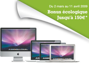 Fino a 150 euro di sconto su alcuni modelli dei computer di Apple quando si porta nel negozio un vecchio computer da buttare. Loro lo ricicleranno ed i clienti otterranno lo sconto. Solo in Francia?