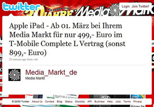 Aggiornamento del 26/01/2010: Media Markt nega che quell’account di Twitter appartenga a loro.