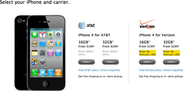 Da domani mattina alle 7 assisteremo al consueto delirio delle code fuori dagli Apple Store statunitensi, per i clienti che non hanno prenotato un nuovo iPhone 4 CDMA, ma da oggi sono aperti gli acquisti online sul sito di Apple e Verizon Wireless (il secondo carrier USA dopo AT&T, una joint venture tra Verizon e Vodafone).