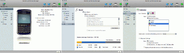 Con il nuovo applicativo sarà più facile sincronizzare le playlist, i calendari, i contatti e gli appunti. Servirà anche ad aggiungere o rimuovere applicazioni, fare gli aggiornamenti o backup. RIM avvisa che sarà necessario almeno Mac OS X 10.5.5.