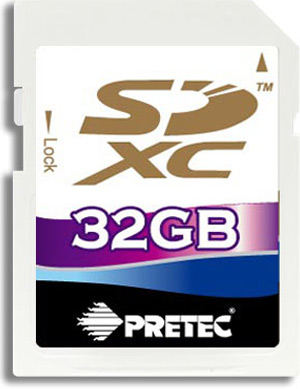 Con un limite teorico di 2 TB e 300 MB al secondo nascono le schede di memoria di tipo SDXC, il primo produttore che ne mostra una è Pretec.