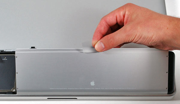 Sotto al coperchio troviamo anche in questo caso l'hard disk e la batteria. Questa è ai polimeri di litio da 50 Watt/ora. L'alimentatore MagSafe è da 85 Watt. Facendo una media tra le 5 ore assicurate con l'uso di una sola GPU e le 4 di quando impiega tutte e due le GPU, l'energia permette di lavorare per 4 ore e mezza.