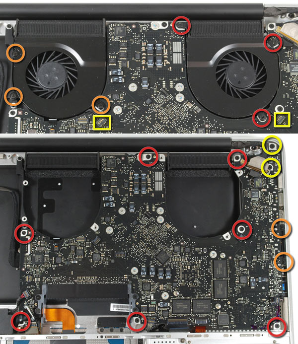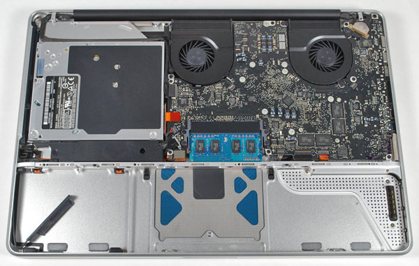 Tutto è estremamente ordinato e, allo stesso tempo, iper compresso in pochissimo spazio. Rispetto al MacBook il MacBook Pro ha due ventole.