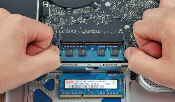 Anche qui il massimo di RAM installabile è 4 GB. Il modello fotografato conteneva slot Hynix.