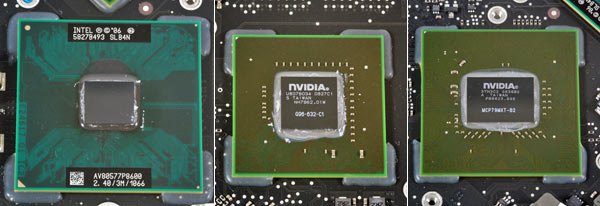 Eccole i principali processori, nell'ordine: l'Intel Core 2 Duo "Montevina" @ 2,4 GHz e FSB 1.066 MHz, la nVidia GeForce 9600M GT (disattivabile via software) e la GPU integrata (già presente anche nel MacBook) nVidia GeForce 9400M.