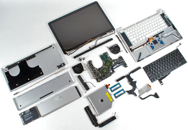 Concludiamo con questa bella immagine di tutte le parti del nuovo MacBook Pro da 15,4".