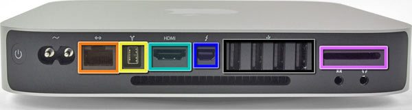 Sul retro del piccolo computer senza schermo vediamo tutto immutato, anche in questo caso le sembianze non cambiano dalla Mini DisplayPort alla più potente Thunderbolt, ma è diversa la sostanza. Va ricordato una volta in più che questo è l’unico Mac in catalogo con porta HDMI (esclusa Apple TV, che Mac non è).