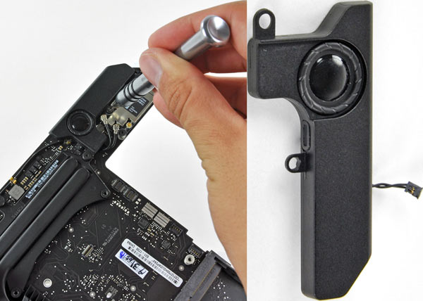 Il piccolo altoparlante si stacca dopo aver svitato un paio di Torx. Niente di particolarmente potente.