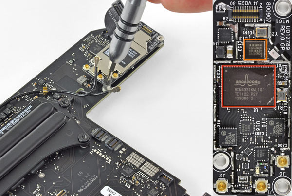 Come per il MacBook Air di nuova generazione anche nel Mac mini si trova la scheda wireless completa del chip Broadcom BCM20702 per il Bluetooth 4 (e standard precedenti), ma quello per il Wi-Fi è il modello BCM4331 al posto del BCM4322.