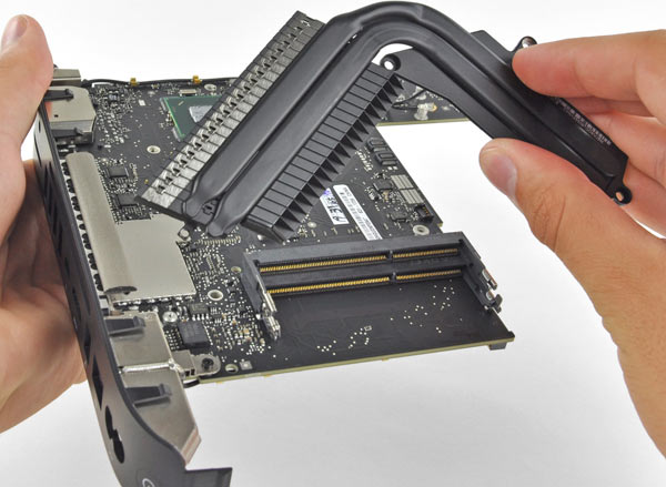 Si estrae il dissipatore di calore togliendo complicate viti scelte da Apple per rovinare la festa ai poco attrezzati.