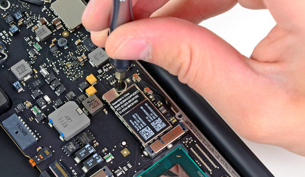 Tocca all’estrazione della mini scheda con capacità wireless del MacBook Air.