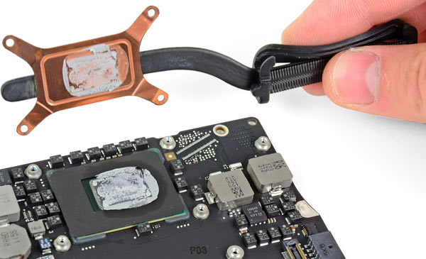 Il piccolo dissipatore di calore è unito con poca pasta termica al processore principale.