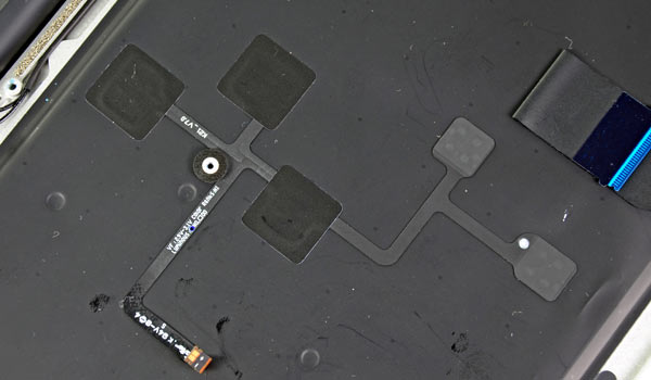 Come possiamo notare, sul lato destro del sottile computer, quella che prima era la porta Mini DisplayPort ora cambia solo l’icona ma diventa la più potente e versatile Thunderbolt. Non è l’unica novità importante, vediamo tutte le altre da dentro il laptop, togliendo il fondo metallico.