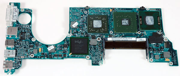 Sono arrivati a smontare la scheda logica, dove risiede il processore di Intel, il Core 2 Duo "Merom" (ehi, Intel, ma non avevi cambiato il logo ben 10 mesi fa? ndr) @ 2,16 GHz.