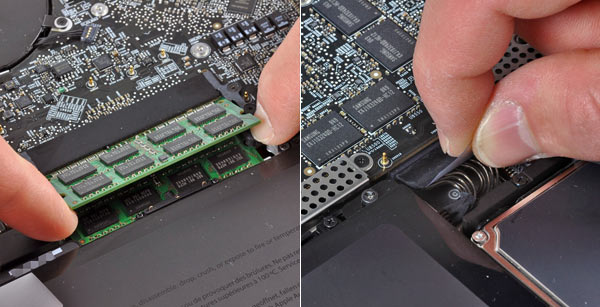 Prima di cominciare a vedere come è fatto dentro, ricordiamo che per questo computer l'utente può solo sostituire hard disk e memoria RAM, nemmeno troppo comodamente come sui MacBook 13" e MacBook Pro 15", perché privo di sportello "apri-e-chiudi" sul retro.