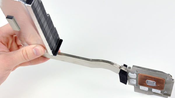 Qui vediamo le canaline per il trasferimento delle temperature alte dai chip agli “scatolotti” del raffreddamento.