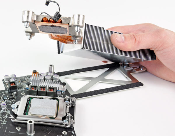 E’ ora di staccare il dissipatore di calore dal processore principale, che è anche la grande novità di questo iMac.