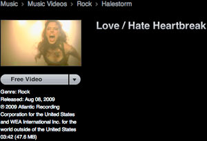 Trasferendoci su iTunes Store USA ecco le novità, precedute dai regali (meno del solito questa volta): il videoclip gratis è “Love/hate heartbreak” di Halestorm.