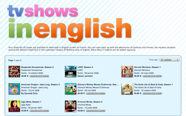 Come già successo in giugno su iTunes Store Germania anche su iTunes Store Francia è nata la nuova sezione TV show in English.