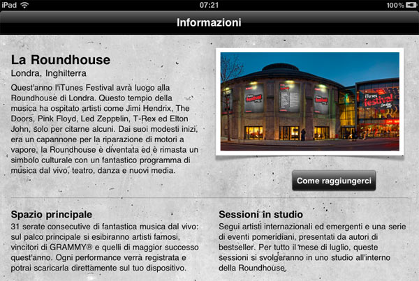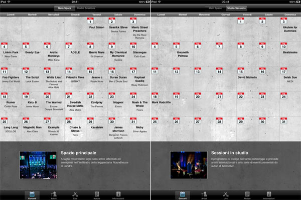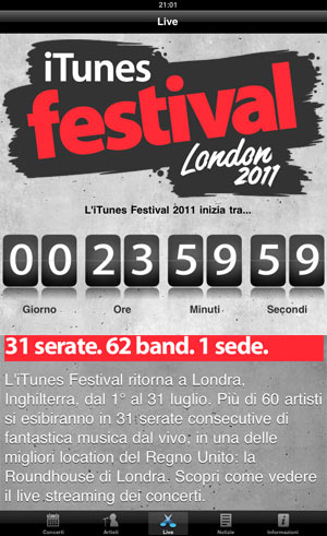 Per tutto il mese di luglio va in scena la musica, Apple ha recentemente segnalato la nuova applicazione gratuita per iPad/iPhone/iPod touch (compatibile con AirPlay della Apple TV), per seguire in diretta o registrati i concerti preclusi alla maggior parte di noi.