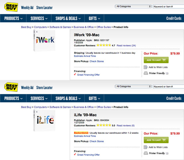 Non ci sono bastate le ripetute fughe di notizie da Amazon per le versioni ’11 di iLife ed iWork, 9 to 5 Mac ha scoperto che queste suite di Apple ora sono terminate anche presso il più grande rivenditore prodotti elettronici, Best Buy.