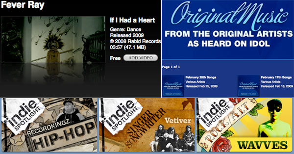 In attesa di notizie occupiamoci, come ogni settimana, delle novità tra i programmi televisivi disponibili su iTunes Store USA, cominciando citando le due nuove sezioni Original Idol song e Indie spotlight, la prima segue la trasmissione della Fox "American Idol" e propone la musica originale, la seconda scopre la musica indipendente.