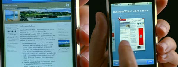 Questi due nuovi 30" pubblicitari, già in onda sui canali televisivi statunitensi, sono incentrati su due funzioni fondamentali dell'iPhone: Internet e la telefonia.