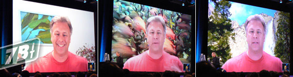 Qui sotto possiamo vedere la prima dimostrazione di tali effetti in iChat 4 durante lo scorso WWDC tra Steve Jobs e Phil Schiller che, eliminato lo sfondo della stanza, ha posizionato alle sue spalle immagini sottomarine o montane.