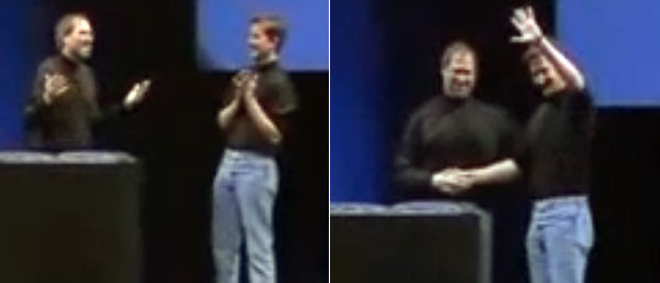 Siamo sicuri che sia stato qualcosa di originale? Chi si ricorda il Macworld Expo di New York City del 1999 (l’anno di AirPort) avrà fatto un sobbalzo quando ha visto l’ennesimo tentativo d’imitazione di Steve Jobs.