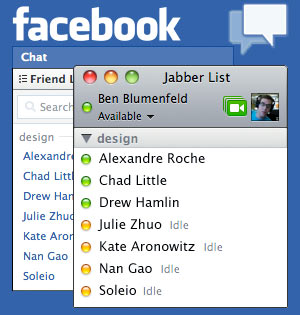 AOL e Facebook hanno ottenuto questo risultato usando la tecnologia open di Jabber (configurazione chat.facebook.com porta 5222 e niente SSL).