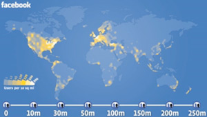 Il più noto dei social network ha una crescita molto rapida e nella mappa a lato viene mostrata la maggiore presenza del sito su scala mondiale.