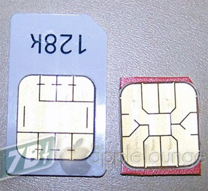 Come vedete accanto il passaggio da una SIM “full size” alla micro SIM non è un passaggio particolarmente traumatico, l’importante è non intaccare il chip di memoria. Questo cambia per disegno e posizionamento del chip di qualche frazione di millimetro, ma le variazioni sono minime, l’importante è che il contatto cada al centro di ogni singolo “quadratino”.
