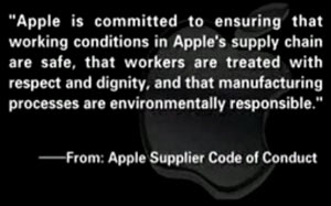 Alle critiche di un gruppo ambientale cinese tutti i grandi marchi hanno promesso di controllare meglio come si lavora presso i fornitori, Apple ha fatto finta di niente ed è rimasta su promesse vaghe e generiche.