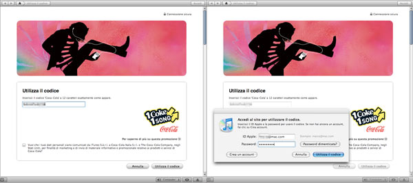 I codici vanno inseriti in iTunes Store al più tardi il 30 aprile, giorno in cui le bottiglie di Coca-Cola valide per questa promozione dovrebbero essere ritirate dal mercato (scommettiamo che invece resteranno in circolazione anche oltre, tanto sull'esterno dell'etichetta non è segnato il termine d'utilizzo), ndr).