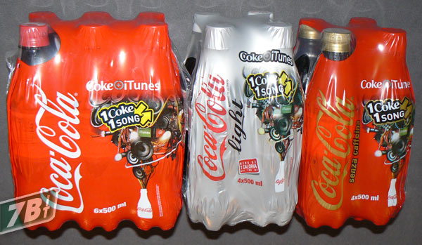 Coca-Cola Italia si è accordata con Apple per regalare musica da iTunes Store attraverso codici gratuiti, celati sotto l'etichetta delle bottiglie PET da mezzo litro di Coca-Cola, Coca-Cola Light e Coca-Cola Senza Caffeina.