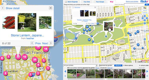 Il sito delle immagini digitali di Yahoo! aggiunge dei particolari tag che collocano su una mappa lo scatto fotografico e ne mostrano altri della stessa area.