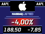 Un'azione Apple al Nasdaq ha chiuso alle ore 21 con un ribasso del 4% a quota 188,50 dollari.